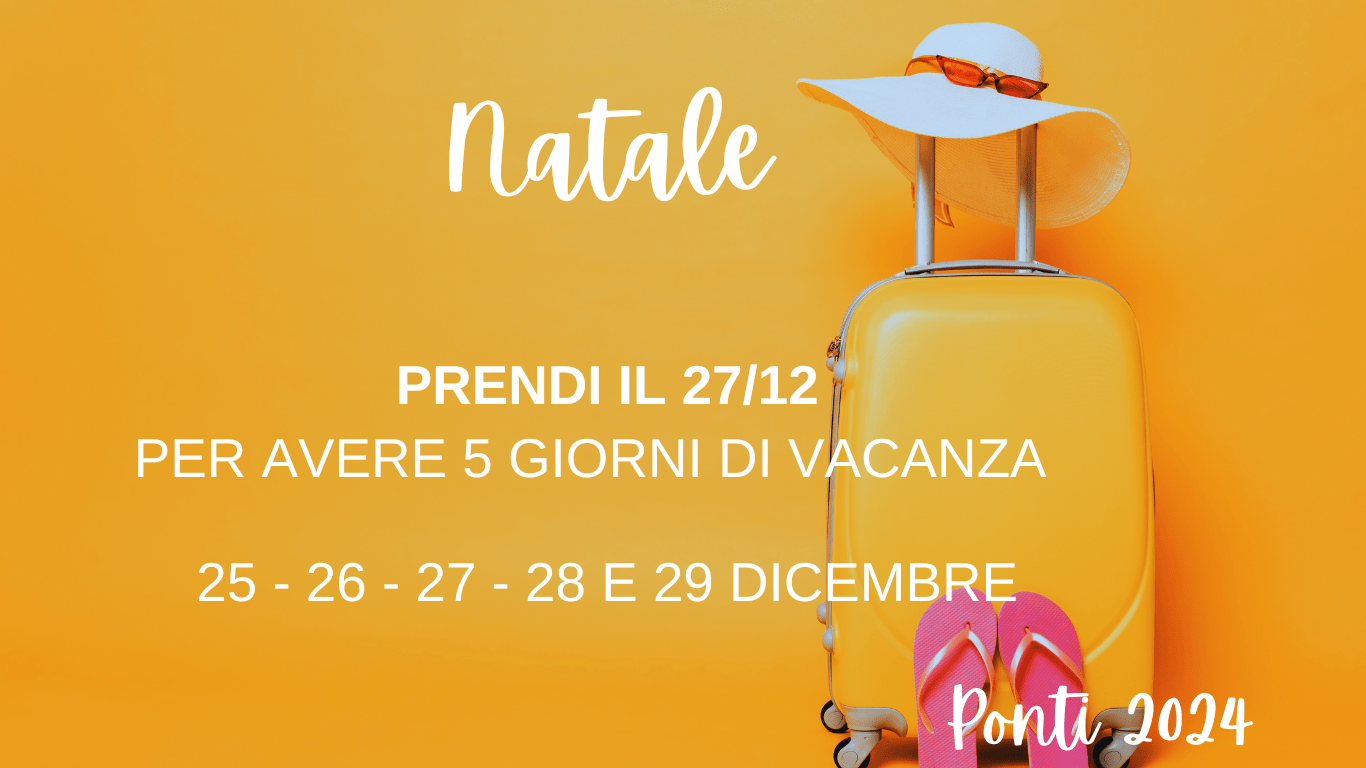 LISTA DELLE FESTIVITA’ 2024 State pianificando le vacanze del 2024? Di seguito la lista dei ponti e delle festività. Condividi: Condividi su WhatsApp (Si apre in una nuova finestra) WhatsApp Stampa (Si apre in una nuova finestra) Stampa Mi piace:Mi piace Caricamento...